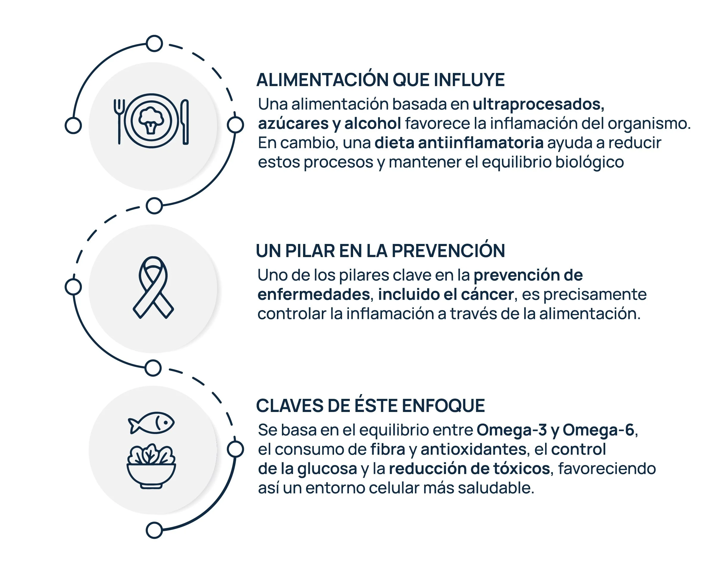 Este enfoque se basa en el equilibrio entre omega-3 y omega-6, el consumo de fibra y antioxidantes, el control de la glucosa y la reducción de tóxicos, favoreciendo así un entorno celular más saludable.